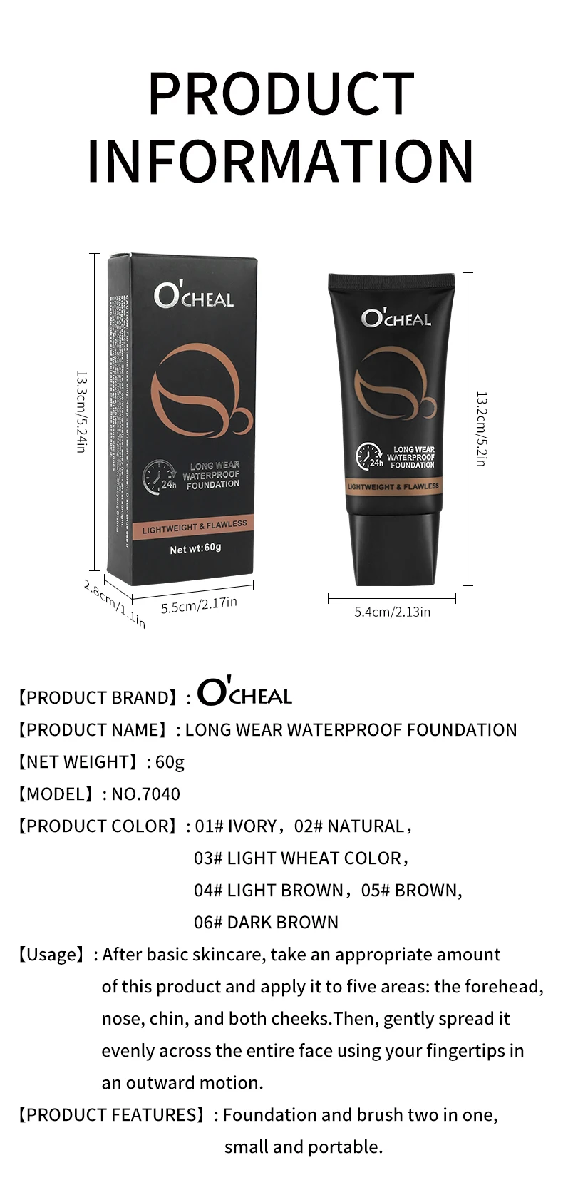 O'cheal Full Coverage Foundation Cream Matte Sheer Liquid Face Concealer Contouring Bronze Long Lasting Moisturizing Makeup Cosmetics Foundation Make-Up