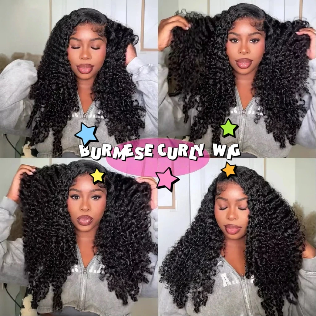 Wewave Burmese Curly Hair Wig Deep Wave 1B Black 13x6 HD Lace Front Human Hair Wig Water Wave 250% Density Bleached Knotted