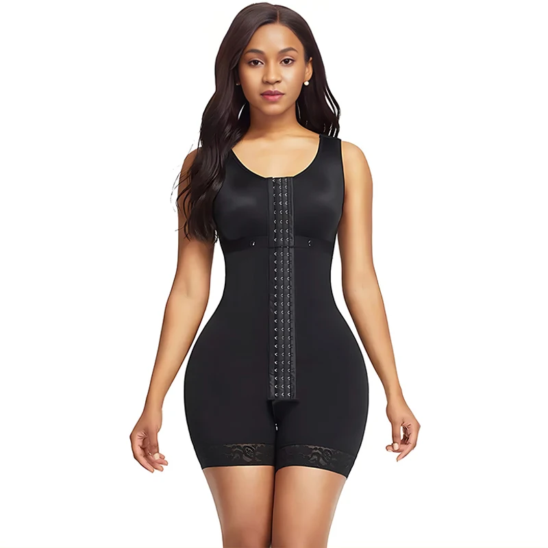 Women's High Waist Full Body Shapewear Tummy Control Butt Lift High Compression Zipper Gusset Design Chest Support Lace Trim